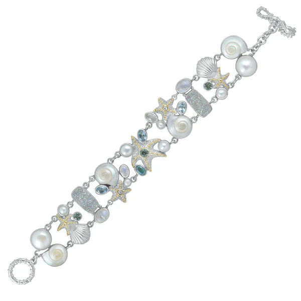 Sterling Silver Bracelet With Component, Blue Topaz, White Cubic Zirchonia, Druzy, Emerald, Opal, Green Topaz, Button Pearl, Rainbow Moonstone.