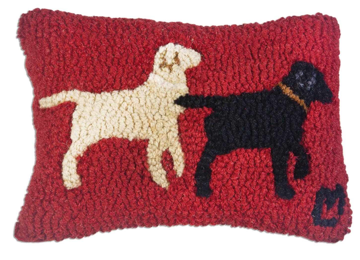 8" x 12" hand hooked pillow, made with 100% natural wool. Zippered velveteen backing with poly-fill pillow insert. Designed in Vermont by Laura Megroz.