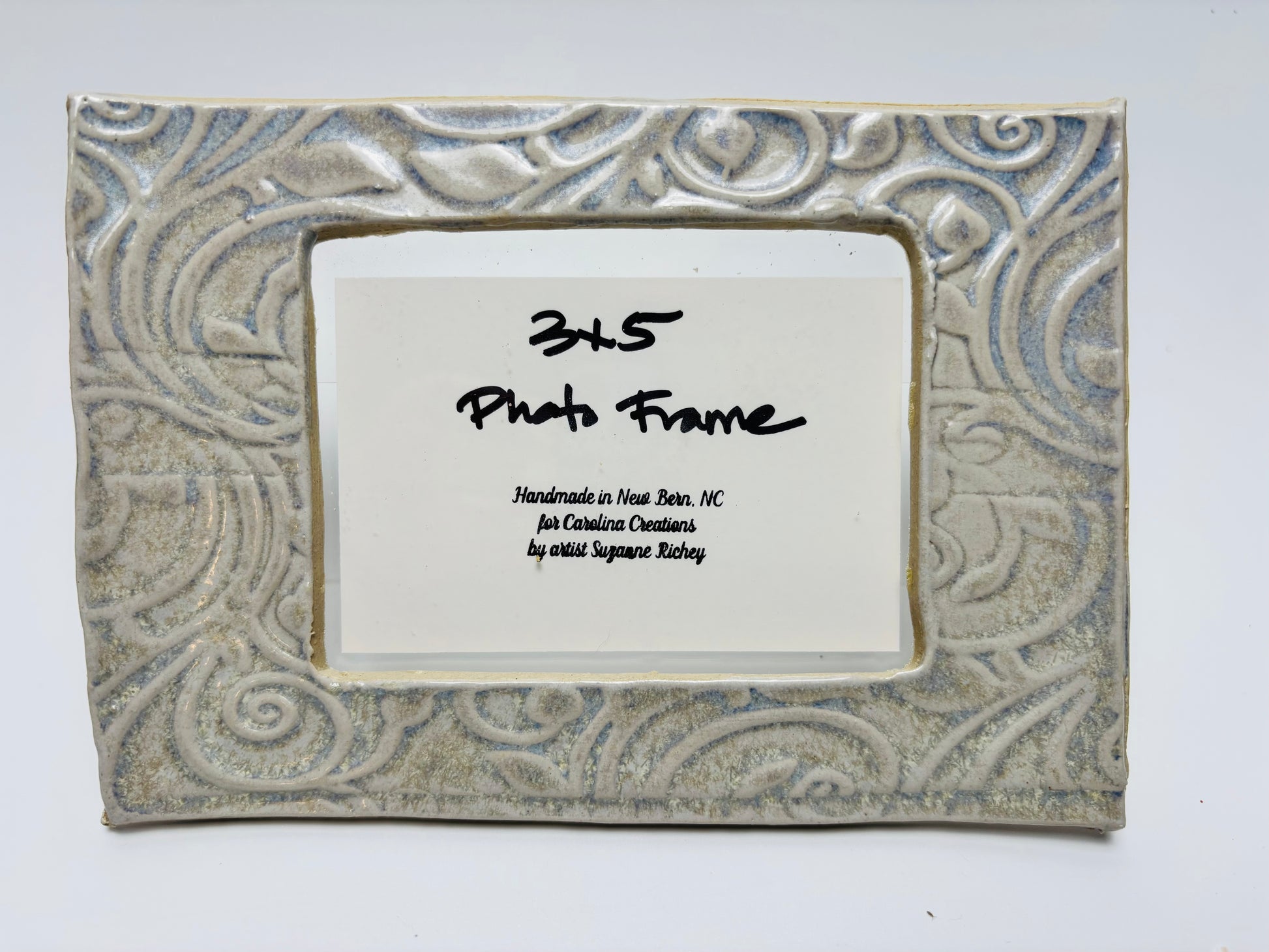 Locally made in New Bern by artist Suzanne Richey in her studio Living Color Ceramics.