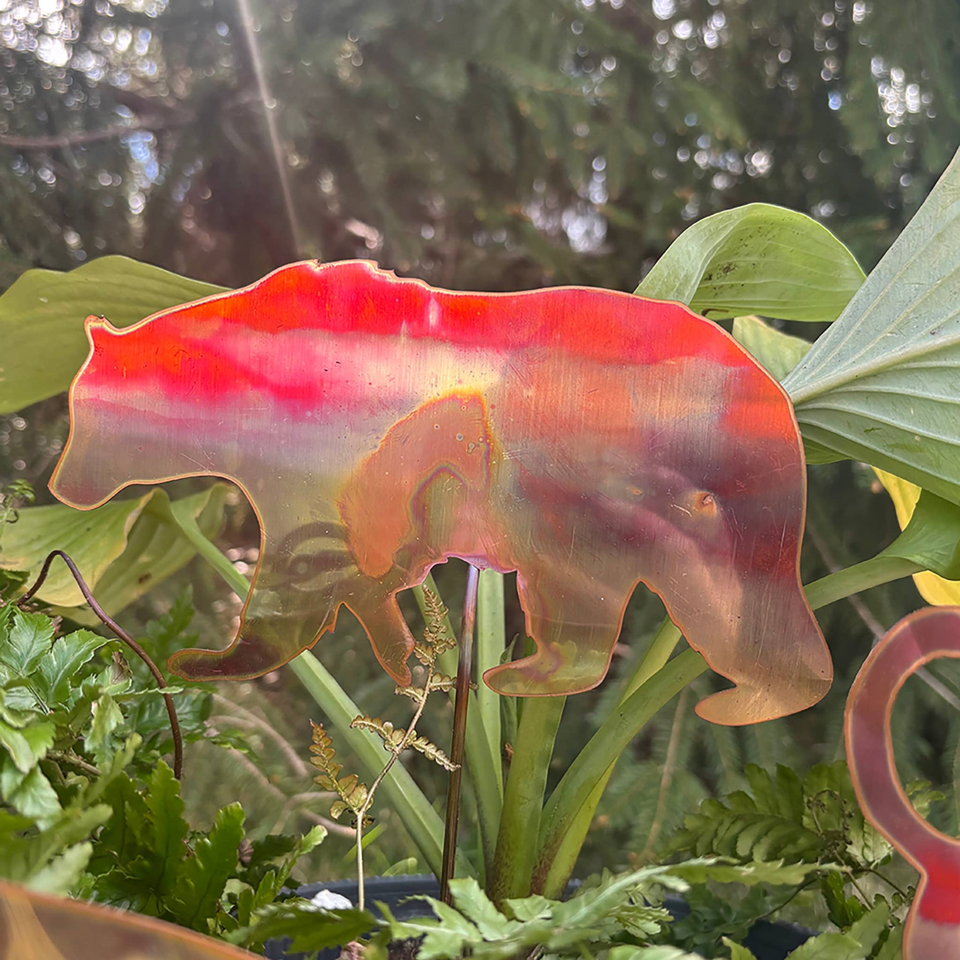 Copper garden stakes are perfect for porch pots or right in your garden. Beautiful alone but better with an assortment! Natural copper will patina in a beautiful way over time. Copper alloy stem is strong and will not rust or degrade in the soil whether in a pot or directly in the garden. Each stake is strong, weather proof, lovely and makes a perfect addition to indoor or outdoor plantings. The top of each stake is about 6”x6” on a 12” copper alloy stake. Made in Cedar Springs, Michigan. *Direct weld * Weather resistant * Artist tag * Natural copper will patina over time * Use indoors or out * Made in USA * Use in gardens, flowerpots or large house plants.